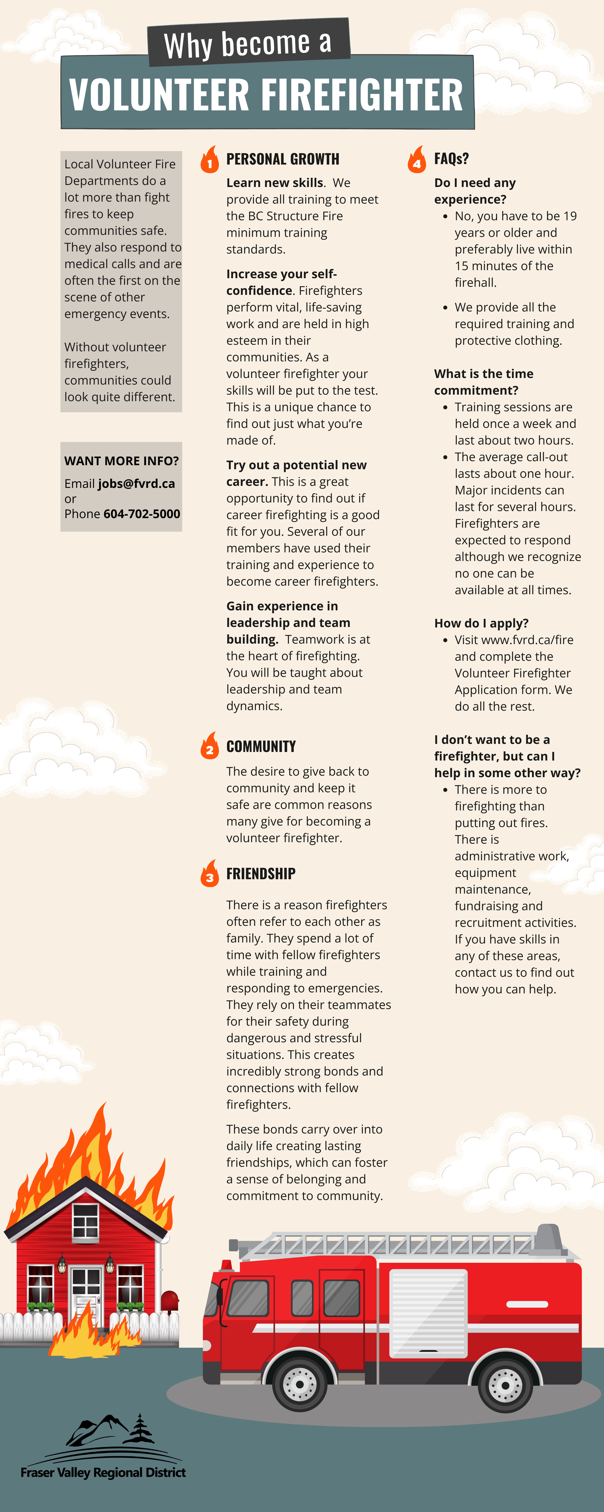 Consider joining the Fraser Valley Regional District's dedicated team of volunteer firefighters!